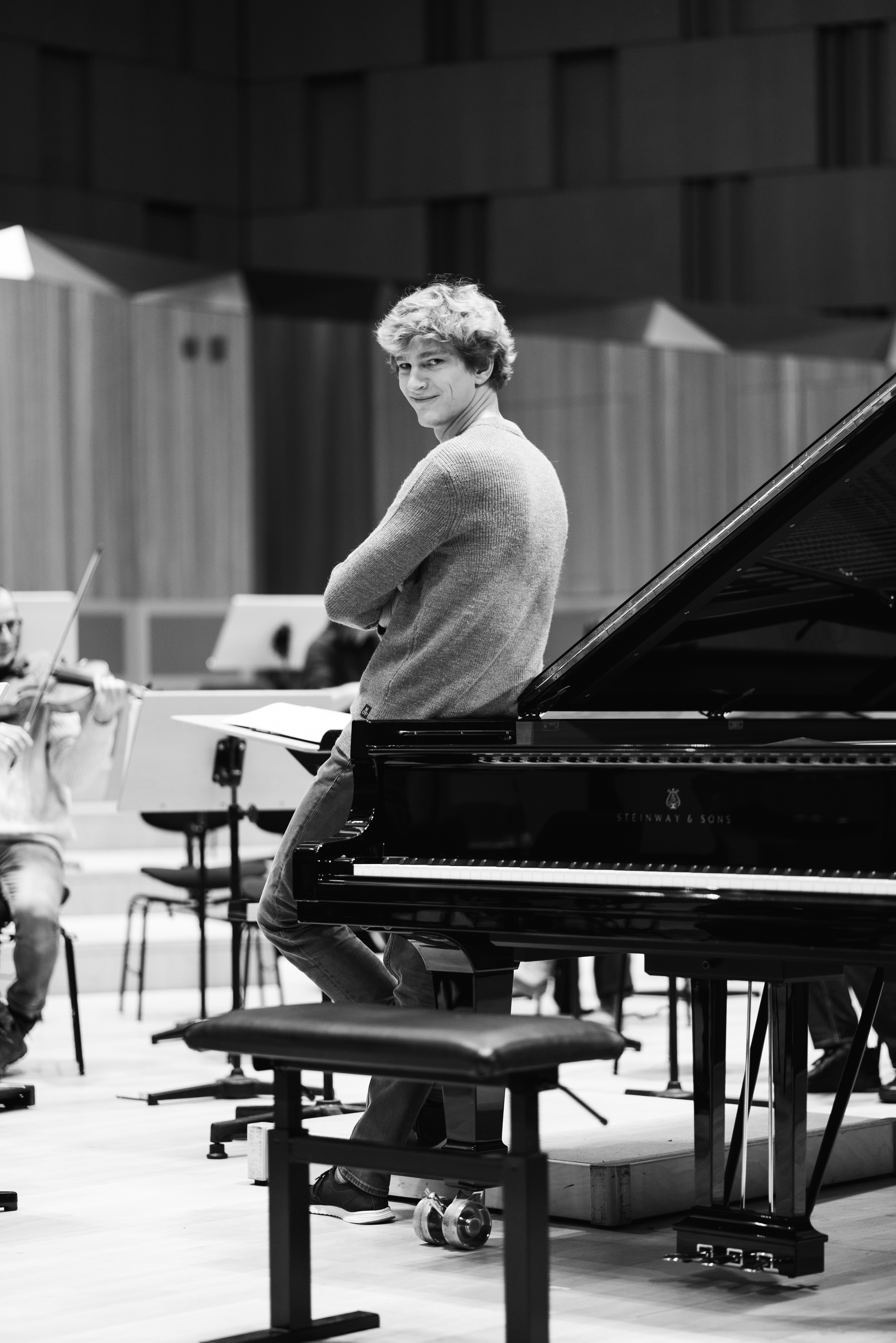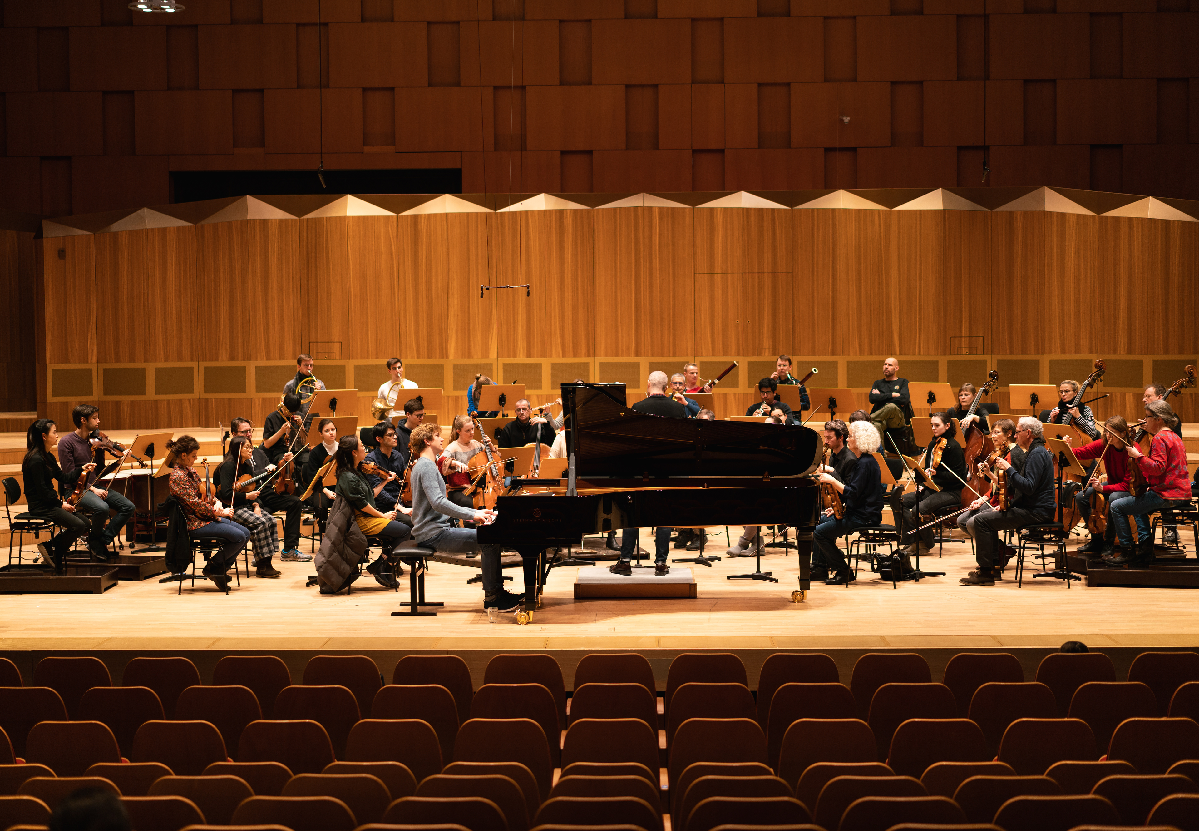 Photographs of Jan Lisiecki, Antonello Manacorda and the Potsdamer Kammerphilharmonie by Sören Lukas Schirmer in Hannover during rehearsals of their Concert Tour in December 2022.