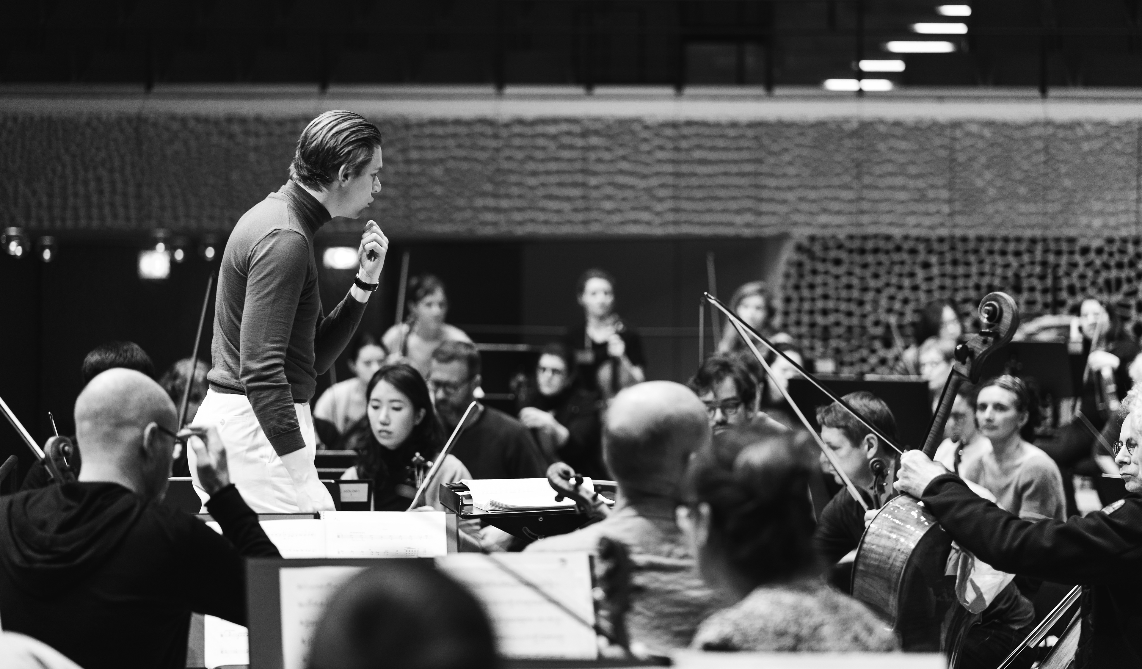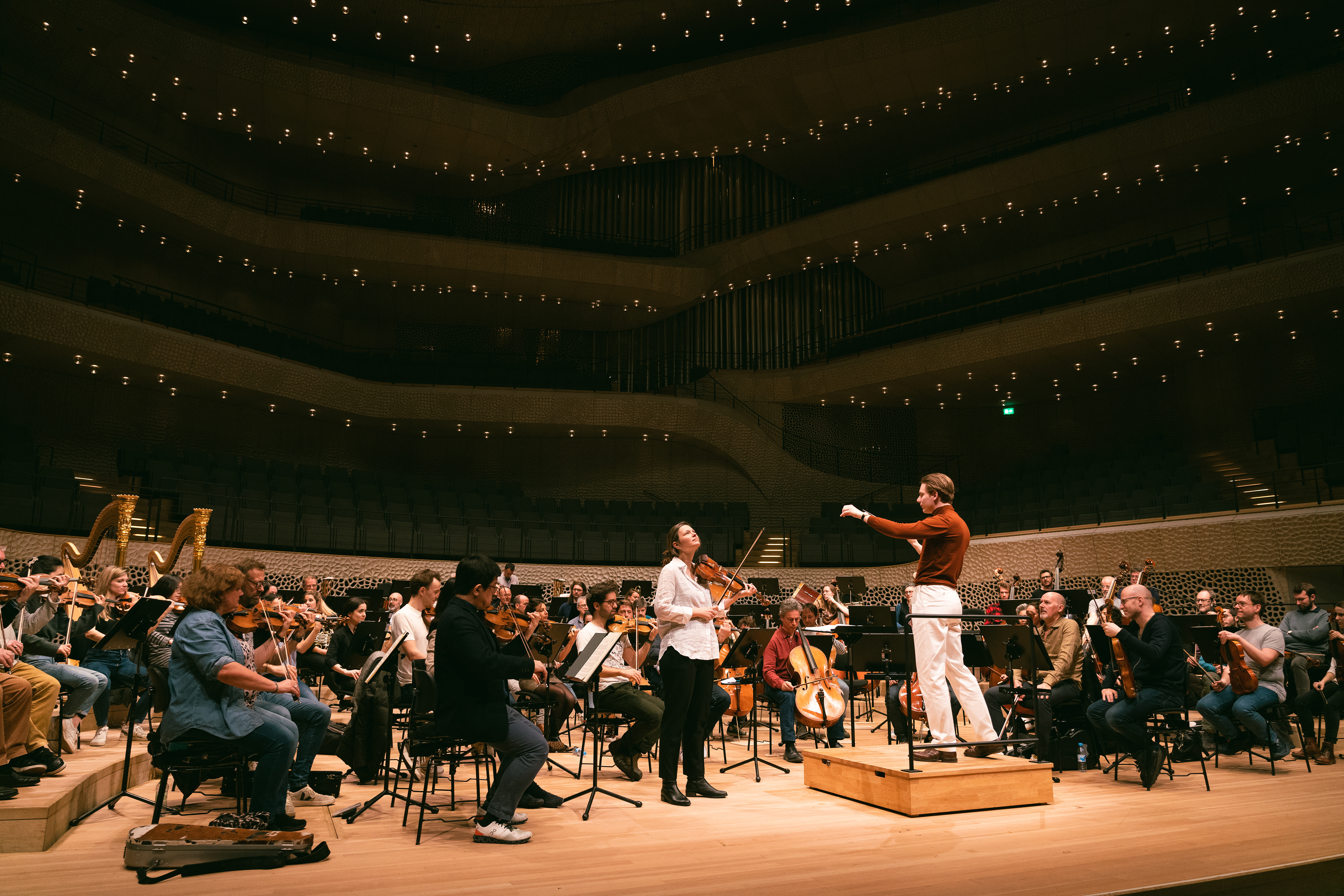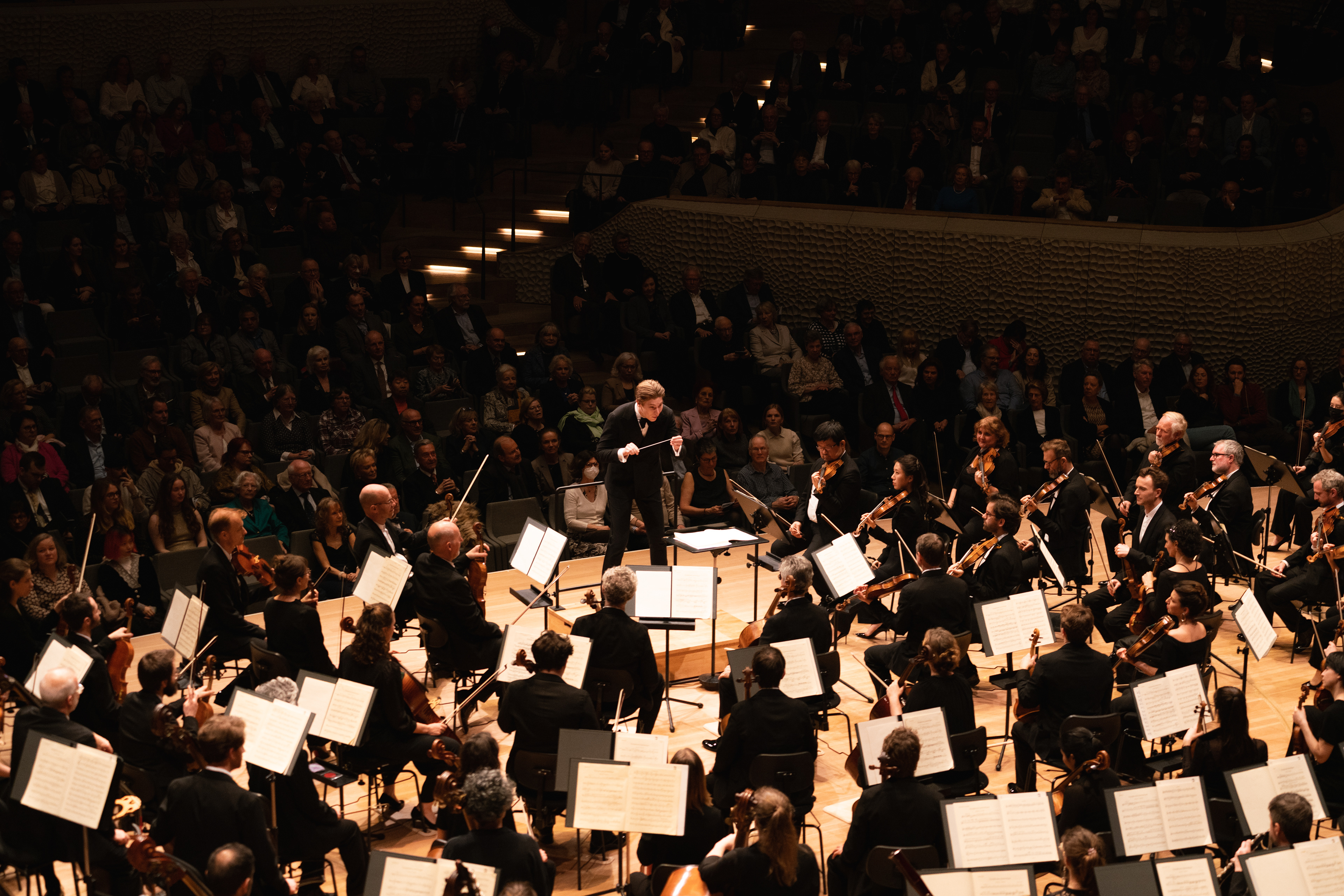 Photographs of Klaus Mäkelä, Janine Jansen and the Orchestra de Paris by Sören Lukas Schirmer at the Elbphilharmonie Hamburg during their Concert Tour in March 2023. Agency ProArte Hamburg.