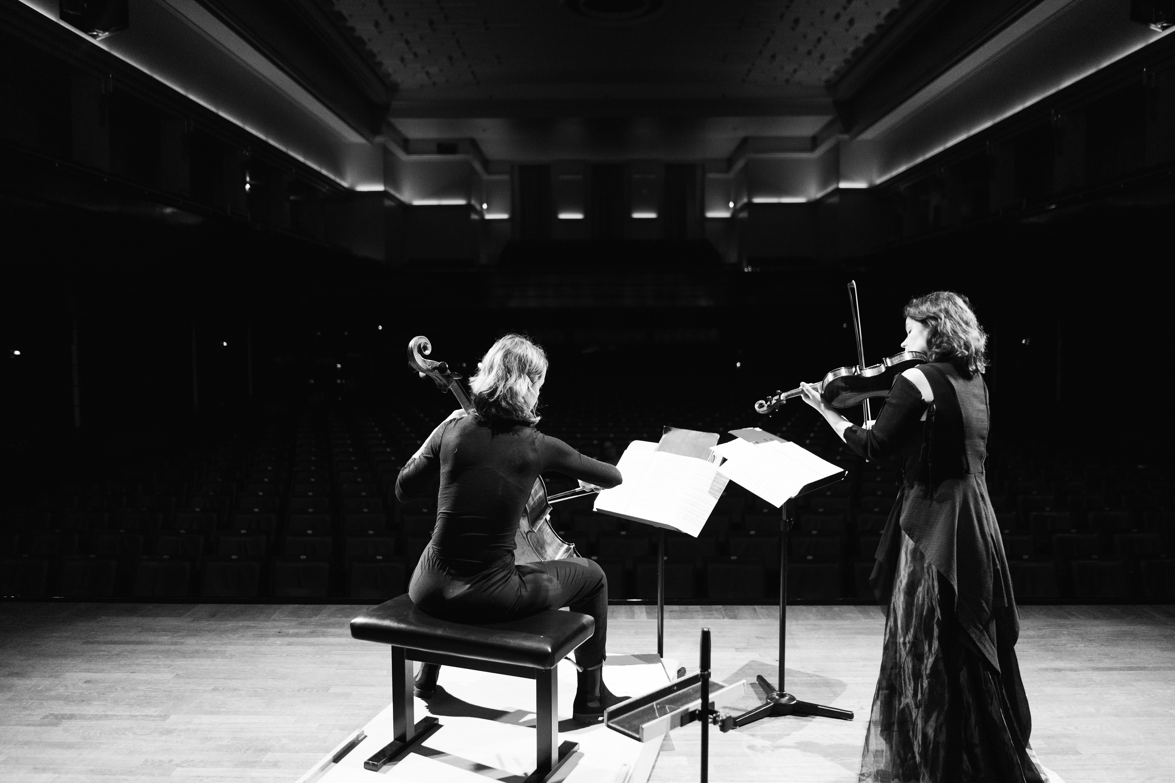 Sol Gabetta and Patricia Kopatchinskaja photographed on Tour in Rehearsals & Concert at Hannover and Bremen. Agency: Deutsche Klassik