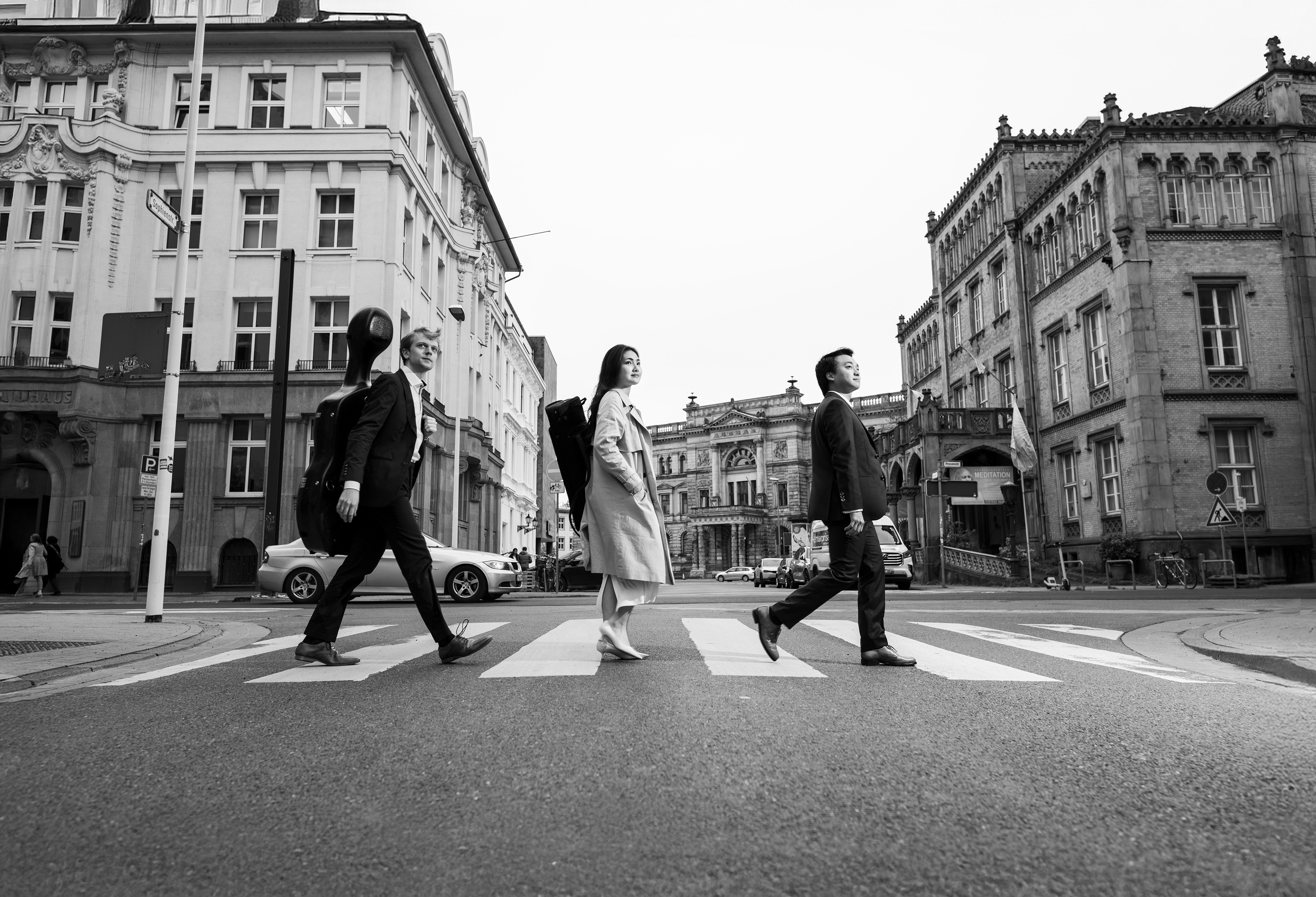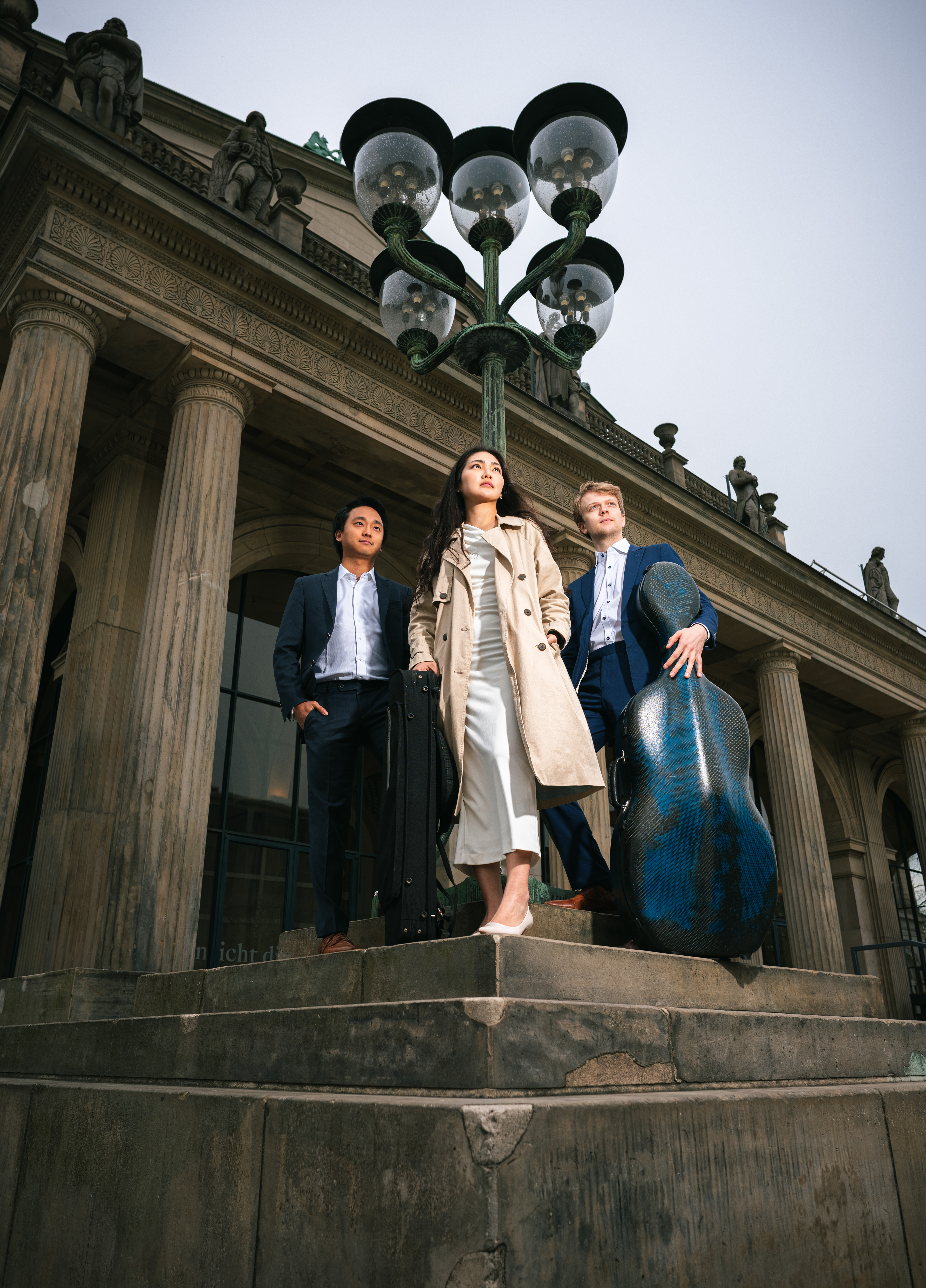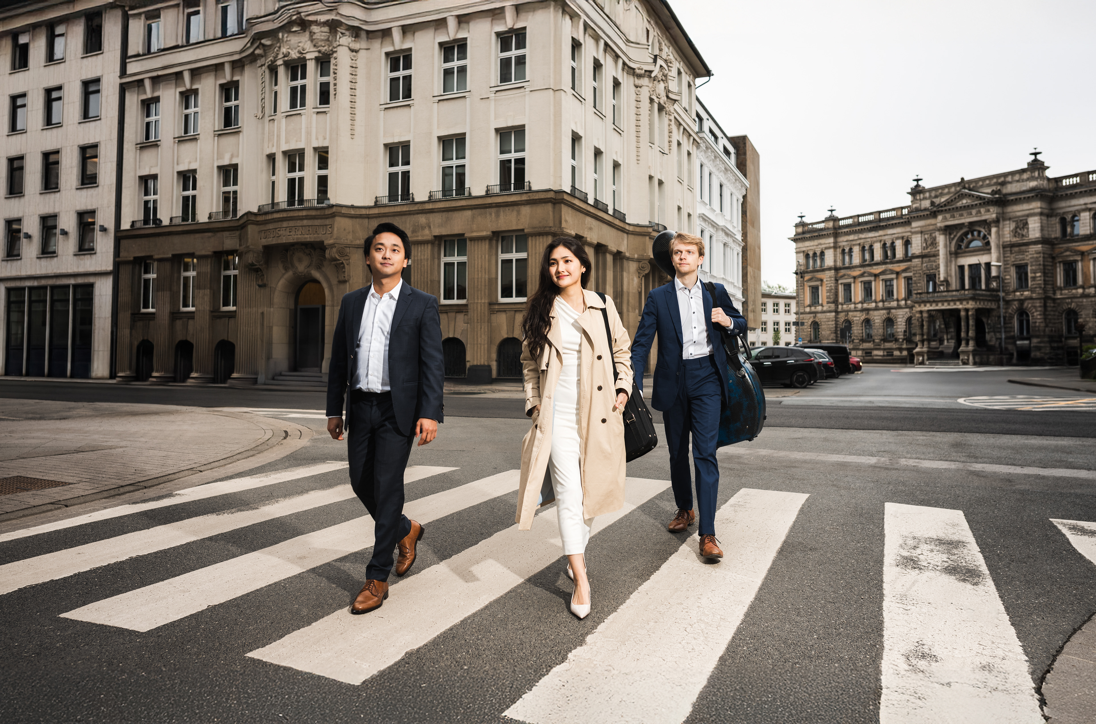 Eunche Kim, Noel WIlde and Jun-Ho Gabriel Yeo photographed in Hannover's City in April 2025 by Sören L. Schirmer.